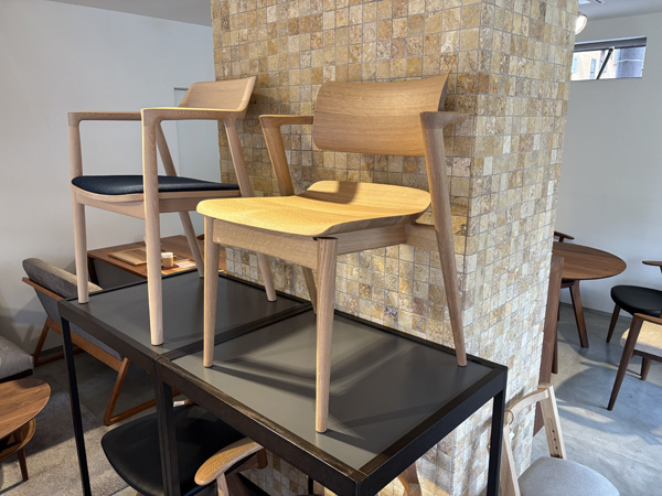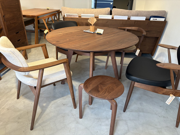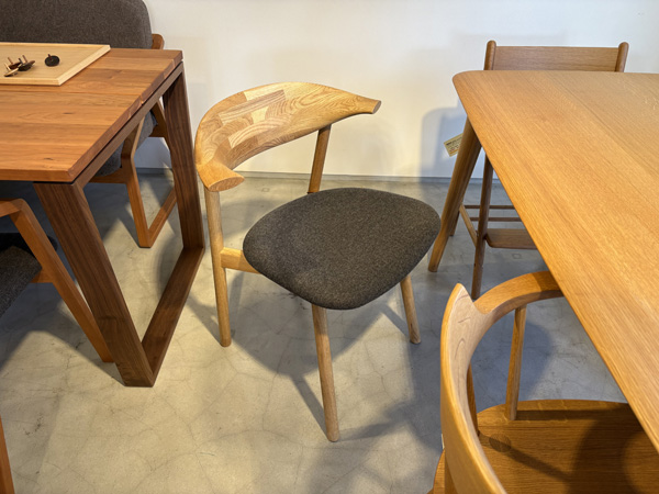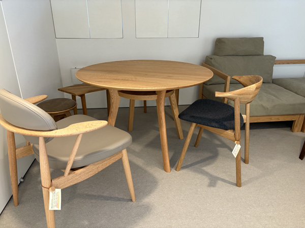 【現品販売可能商品】(日付は展示開始日)の表記のものは、節や木目が特徴で実物を販売した方が良い商品、樹種の違う2脚以上展示がある商品、高額な椅子やテーブル、コンパクトサイズや軽量でそのままお持ち帰りができる商品。※展示期間にあった適正な現品での価格で販売しております。