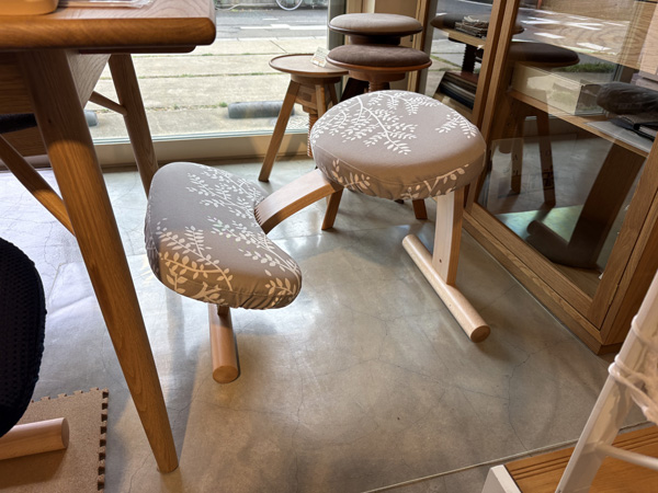 ご来店の際は、お使いのダイニングテーブルやデスクなどバランスチェアと一緒お使い頂く家具の天板の高さをご確認の上、お試し頂く事をおすすめいたします。