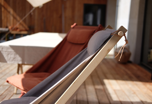無垢の背板は絶妙な角度設計。角度によりどんなクッションでも座り心地が良いため、専用クッション以外にも、お手持ちのクッションを合わせたアレンジもお楽しみいただけます。
