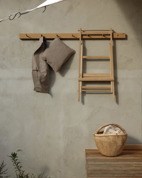 本シリーズ「Primitivo(プリミティーヴォ)」は人智を活かした明快な構造を探り、またその知恵を理解しながら組み立てる愉しさを感じてもらいたいという思いで開発されました。組み立て式であることはその愉しさだけでなく、梱包が小さくなることで輸送にかかるエネルギー負荷を抑えられたり、パーツがシンプルなので、単一パーツ単一素材になり、修復/メンテナンス性の向上や素材の分別のし易さにもつながっています。木材は国産のナラ材を使用し、単純で必要最小限の加工とすることで、材料の歩留まりを良くし、材料調達にかかるエネルギー、さらには加工にかかるエネルギー負荷も抑えられており地球環境への優しさにもつながっています。