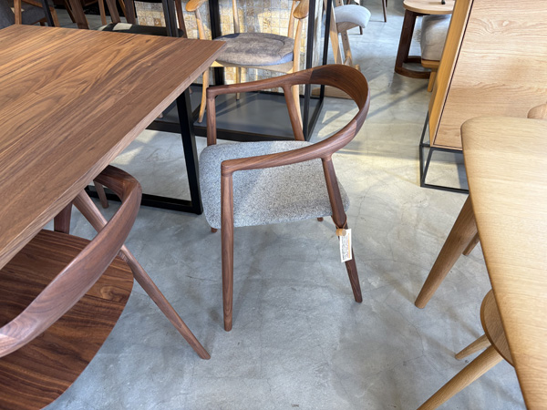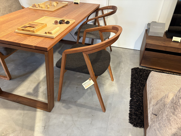 可能な限り細身に仕上げた脚先によって一見スリムに感じるが、背、アーム、脚はかなりの厚材を削り出して接合している。座り心地と局面の美しさにこだわった座にも、厚い無垢材を使用している。