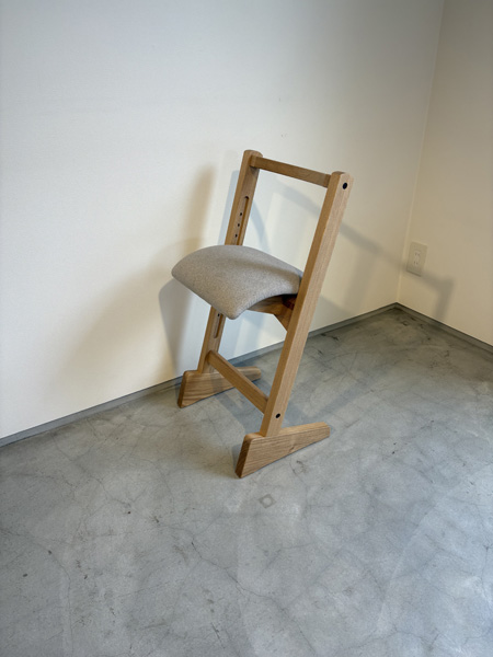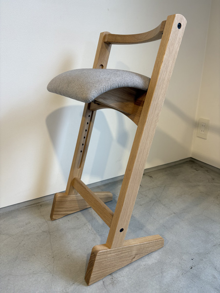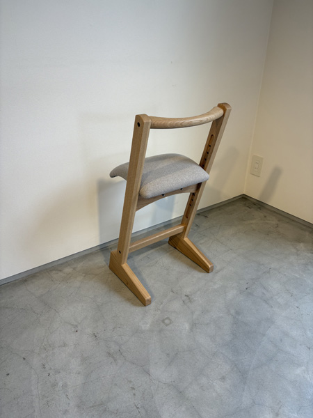料理や身支度のときにちょっと座りたい、でも深く座るほどでもないときのチェアです。
