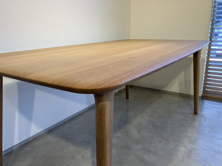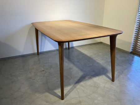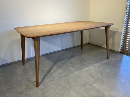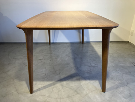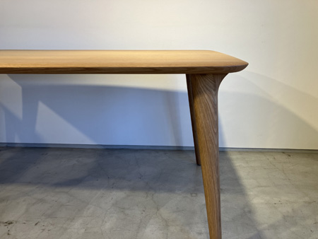角が丸い天板に丸テーパー脚を組み合わせた、お子様のいる家庭でも安全なテーブル。