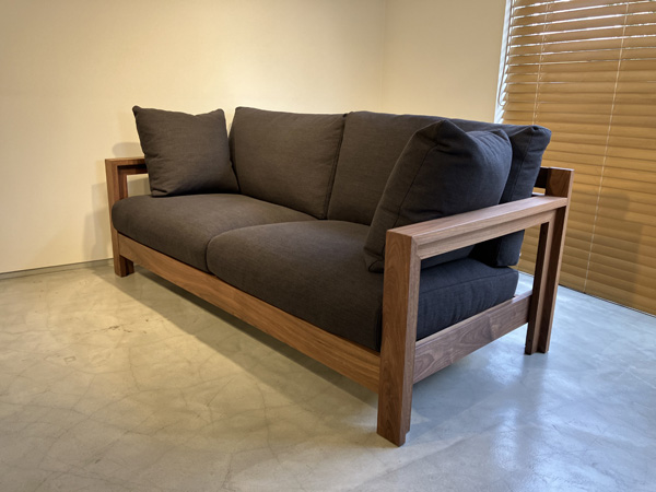 FINEシリーズのファーストモデル「ソファRB」は、5/4inch(31.75mm)の材料を研磨し25mm厚の材から構成され、厚材で構成されるAUTHENTICITYシリーズよりFINE(繊細)な印象を持たせます。アーム部分は45度の接合方法(留加工)を2重にし、より精度が求められる伝統的な工法でデザインされました。