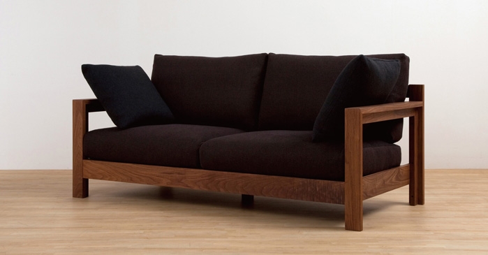木のダメージが少ない冬期にウインターカットされたアメリカ広葉樹の最高グレード(FAS)材からさらに厳選された無垢材を使用。ファブリックは、イタリア製の自然素材を採用し、交換も可能。内蔵ウレタンは、世界トップクラスの日本製高密度多層ウレタンを採用。クッションは、最上級フェザーであるハンガリー産マザーグースのスモールフェザーを採用したフェザークッション。